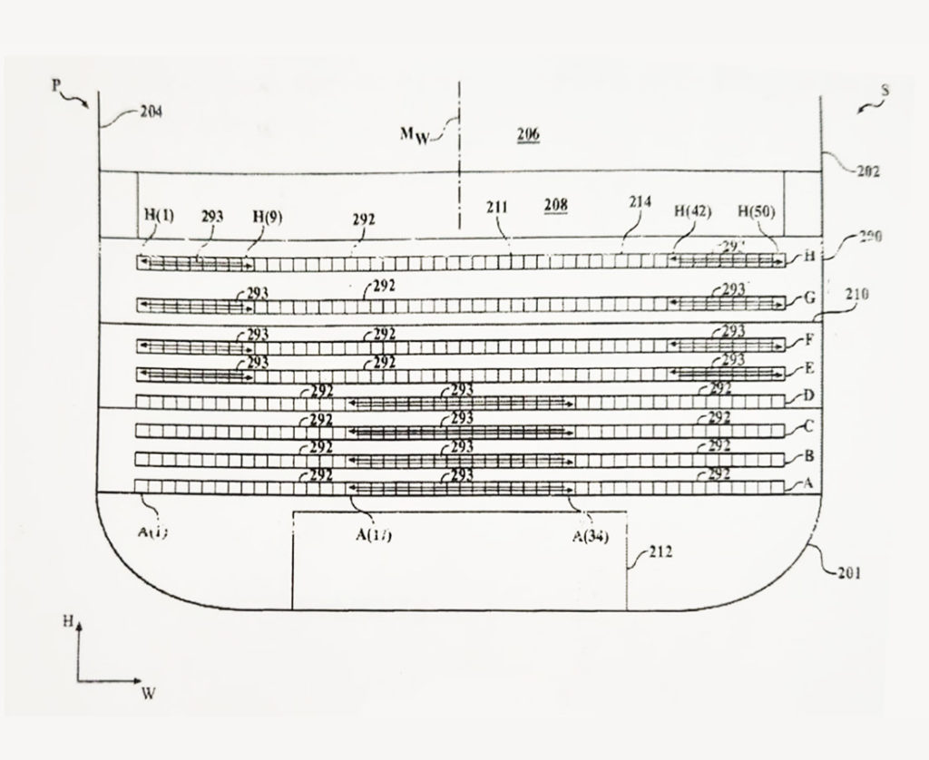 (Cf. US Patent No. 11,572,140). - Utilizes a system of racked and movable ballasting batteries.(Cf. US Patent Nos. 5,860,783, 6,077,019 and 11,572,140).
