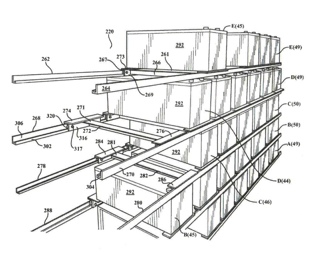 Our repeated references to “carriage assemblies” and movable storage racks redirects us now to US Patent Nos.5,860,783 and 6,077,019, which describe a Cargo Container Storage and Retrieval System and, thankfully, led us to Nick Zuev. The following Abstracts tell all.